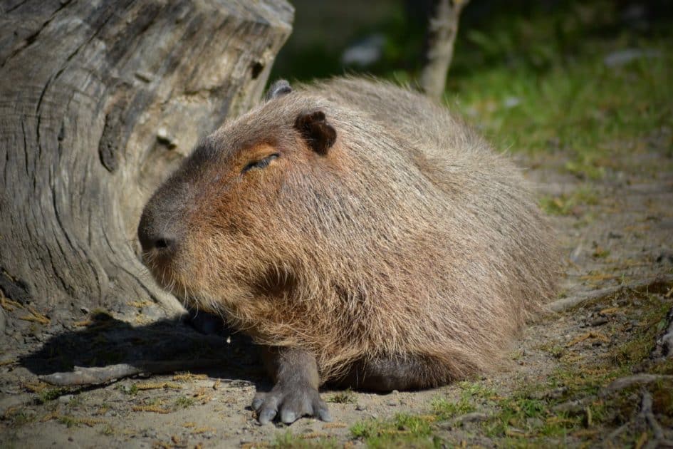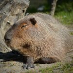 Kapybaran, eller vattensvinet som vi ibland säger på svenska, är en gigantisk gnagare som kan väga uppemot 60 kg. Den är en effektiv gräsätare som kan knapra i sig även de torraste och kortaste grässtråna. Kapybaror lever i familjegrupper med 10–30 individer varav en är ledarhanne och resten honor, ungar och subdominanta hanar. Kapybaran är en skicklig simmare och när den känner sig hotad springer den ner i vattnet och ligger där med bara nosen ovanför vattenytan. Då blir den nästan osynlig bland vattenväxterna. Dessutom kan den dyka och stanna under vattnet i upp till fem minuter. I början av 1500-talet beslutade katolska missionärer att det var tillåtet att äta kött från kapybaror under fastan. Troligen berodde detta på att munkarna trodde att dessa stora vattenlevande djur var släkt med fiskar som ju är tillåten mat under fasteperioden. Eftersom kapybarans kött anses vara mycket gott och skinnet värdefullt är jakt fortfarande ett mycket stort problem. Kapybaran föds även upp i hägn för köttproduktion. Idag räknas inte kapybaran som hotad, men jakt och den snabba skövlingen av regnskogen hotar arten på sikt.