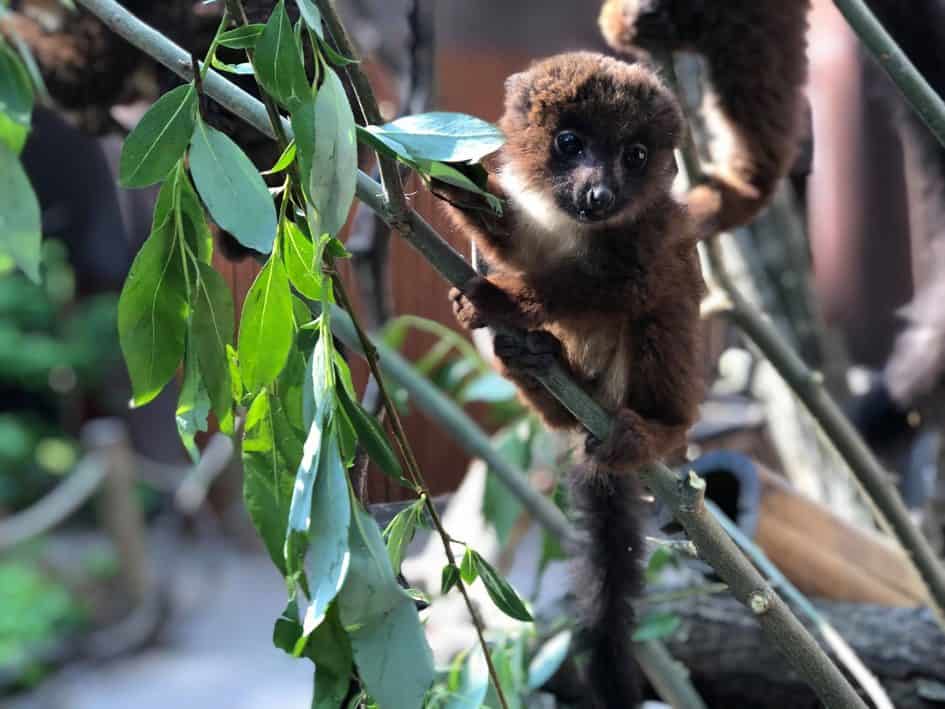 Den rödbukade lemuren lever i familjegrupper och när en hane och en hona har valt varandra kan de leva hela livet tillsammans, något som är ovanligt bland lemurer. En annan sak som är unikt är att när paret fått ungar bär pappan dem lika mycket som mamman. Det är lätt att se skillnad på hanar och honor då hanar har vita fläckar under ögonen och brun mage medan honor har ljusare päls på magen. Det finns drygt 20 arter av vad vi kallar just lemurer men till familjen lemur räknas drygt 100 olika arter. Antalet kända arter inom familjen har fördubblats under de senaste 25 åren. Idag är ca 90% av arterna inom lemurfamiljen hotade av utrotning och det största hotet är skogsavverkning och illegal jakt. Parken Zoo deltar i det europeiska avelsprogrammet, EEP, för bevarande av rödbukad lemur.