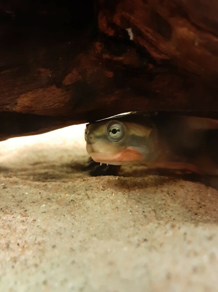 Vändhalssköldpaddor drar inte in sina huvuden i skalet som andra sköldpaddor utan lägger huvud och hals åt sidan under skalet.